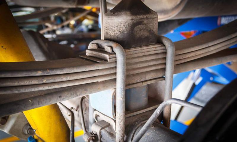 Na rotina, um dos primeiros elementos a ser vistoriado é a lubrificação. Componentes como pinos de suporte e pinos centrais, como o espigão, exigem lubrificação constante para não desgastar. Em seguida, devem ser feitos exames nas buchas, grampos, amortecedores, barra estabilizadora e batente, além de conferir o desgaste e torque de aperto de parafusos e porcas.